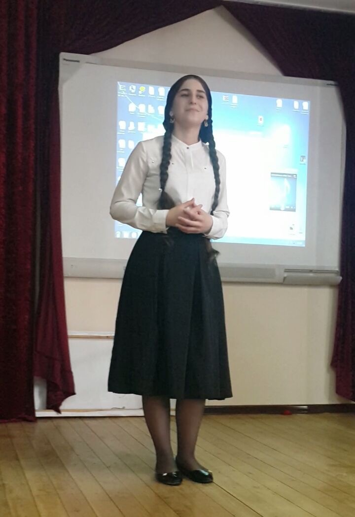 Ученица 8 класса Байсулаева Шахадат заняла второе место. Она прочитала главу 2-ю под названием «Моя мамочка» из повести Лидии Чарской «Записки маленькой гимназистки».