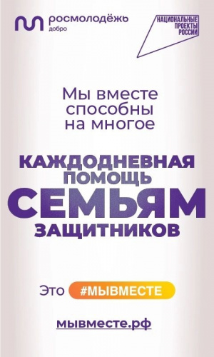 22.11.2022Мы вместе способны на многое! В целях реализации федерального проекта «Социальная активность» национального проекта «Образование» в период с 15 ноября по 5 декабря 2022 года во всех субъектах Российской Федерации пройдет информационная рекламная кампания «#МЫВМЕСТЕ» , направленная на популяризацию волонтерской деятельности в России.