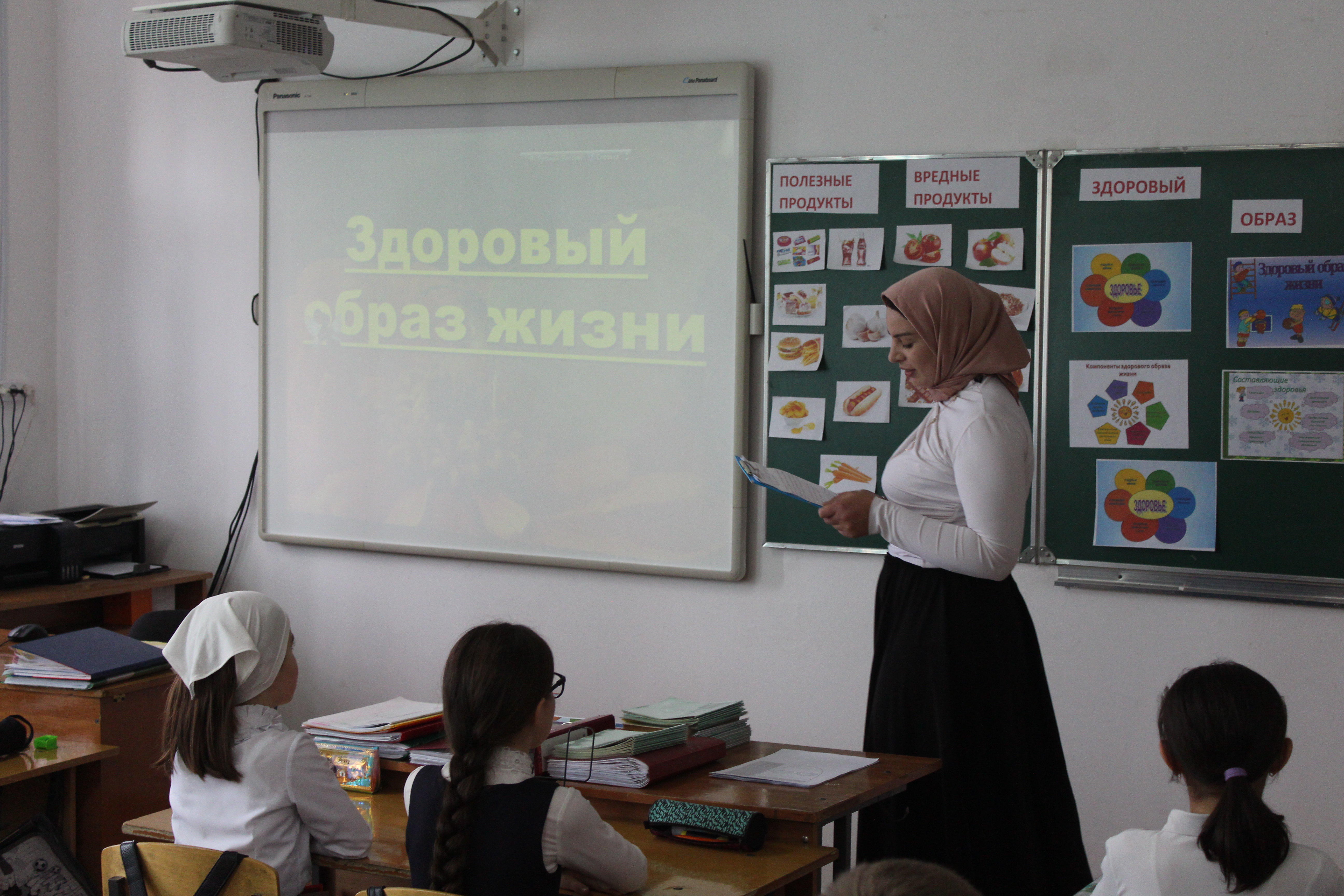 Ольмусханова Х.С. в 4 классе провела классный час на тему "Здоровый образ жизни". Классный час был посвящен правильному питанию.