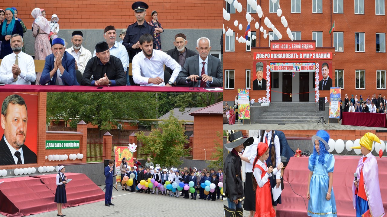 01.09.20171 сентября в нашей школе состоялось празднование Дня знаний . Торжественную линейку открыл директор школы Моллаев С.Б. Он представил гостей: начальника районного управления образования Зубайраева Сайпуддина Юсуповича, главного специалиста-эксперта Министерства образования и науки Чеченской Республики Закриева Рахида Валидовича и Главу администрации села Халаева Бай-али. Гости поздравили с началом учебного года и обратились к учащимся школы с напутственными словами и пожеланиями. Далее слово было предоставлено первым классам, которые произнесли Торжественную клятву ученика школы и пообещали получать хорошие отметки, слушаться старших. Была показана инсценировка, в которой принимали участие сказочные герои: Буратино с Мальвиной, лиса Алиса и кот Базилио, почтальон Печкин и злая Баба-Яга. По окончании действа Буратино с Мальвиной открыли символический замок и открыли вход в Страну знаний. Затем прозвучал первый звонок. В добрый путь! После торжественной линейки были проведены классные часы по теме: «Россия, устремлённая в будущее». В актовом зале школы прошло мероприятие по профориентации для обучающихся 9-11 классов.