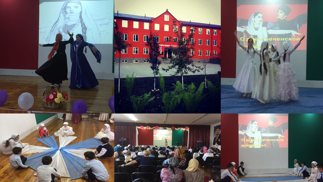 16 сентября 2017 года в 13 часов 30 минут состоялось торжественное мероприятие, посвящённое Дню чеченской женщины. В начале торжества из-за кулис прозвучало стихотворение Симы Ориан «Женщина-чеченка» в исполнении классного руководителя 7а класса Юсуповой Дианы Назырхановны. Затем ведущие, ученик 11 класса Чажаев Магомед и ученица 9а класса Байсулаева Шахадат, приветствовали зрителей и зачитали выписку из Указа Главы Чеченской республики Рамзана Кадырова об утверждении празднования данного замечательного события в истории чеченского народа. Затем было предоставлено слово заместителю директора школы по воспитательной работе Абрекову Артуру Малаевичу. В своей небольшой речи он говорил о том, какие тяжёлые испытания выпали на долю чеченской женщины в далёком и в недавнем прошлом и поздравил всех с этой знаменательной датой. В продолжение мероприятия на сцене выступили учащиеся школы: второклассники исполнили танец с ленточками, ученица 9а класс Байсулаева Шахадат продекламировала стихотворение Расула Гамзатова «Мама», семиклассницы Ахмедова мата и Ахматова Баната показали зажигательный танец горянок, а Арбиева Тамила и ученица 9б класса Исмаилова Хеда спели песни на чеченском языке о женщине-матери, ученицы 6б класса представили вниманию зрителей «Танец чаек». Под звуки этого танца юноши из 11 класса раздали всем женщинам в зале по розе с добрыми пожеланиями на открытках в виде сердца. В финале праздничного мероприятия все участники концерта и его организаторы, классные руководители 7а и 7б классов Юсупова Диана Назырхановна и Султанбиева Зайнап Адамовна , поднялись на сцену и, ещё раз поздравив, попрощались с «виновницами» торжества и остальными зрителями.