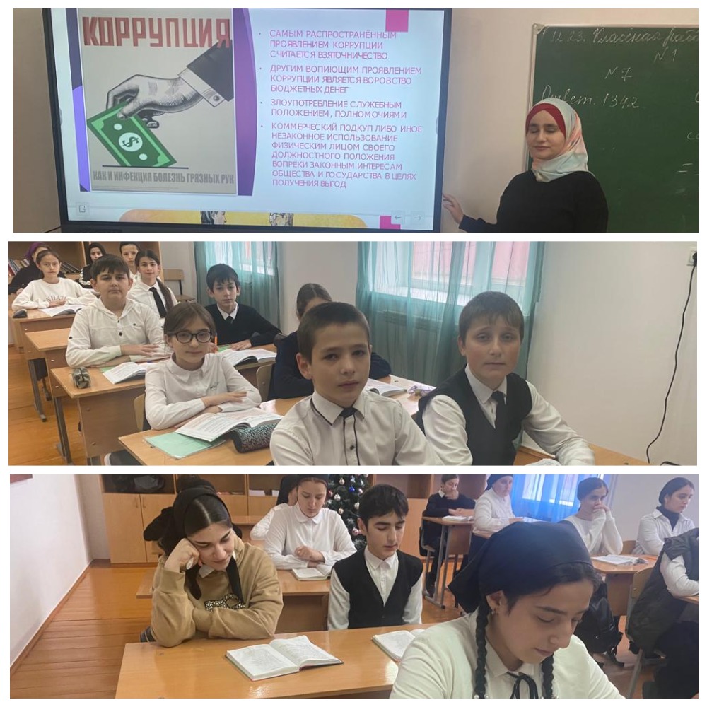 В рамках международного дня борьбы с коррупцией прошли классные часы. Тема классных часов была очень актуальной и важной — “Закон и коррупция”. Школьники узнали о том, какой вред для общества несёт коррупция, какие механизмы борьбы с ней существуют, а также какие ответственные за нарушения закона могут быть последствия для каждого гражданина. Классные руководители вместе со школьниками обсудили проблемы коррупции в разных областях жизни, отметив, что каждый человек может внести свой вклад в борьбу с этим явлением, начиная с собственных поступков и отношения к закону. Классные часы были не только информативными, но и познавательными.