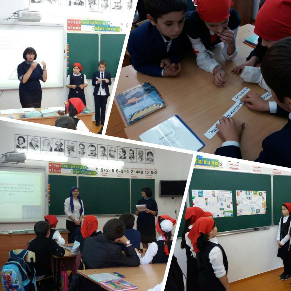30.09.201730 сентября в 4 а классе в рамках Года Экологии прошло мероприятие «С уважением к энергосбережению», которое подготовила и провела классный руководитель Загария Ирина Владимировна. Она приветствовала гостей в лице учителей русского языка Абрековых Ларисы Малаевны и Артура Малаевича и урок по экологии начался. Он прошел в форме беседы, в которой учащиеся класса принимали активное участие: они рассказывали об электроприборах, которые помогают людям в быту; отвечали на вопросы о природе электричества, способах ее получения, отгадывали загадки. От учителя они узнали, где именно вырабатывается электрический ток для нашего села и как он попадает в наши дома. На мероприятии была создана проблемная ситуация: дети представляли свои мнения о том, что было бы в том случае, если бы не было электричества, газо- и водоснабжения. Был сделан вывод, что природные ресурсы надо экономить. Далее разговор пошел о том, какие существуют способы энергосбережения и экономии других природных богатств. Полезные советы давал еще один участник беседы Энергоша в исполнении ученицы 9 а класса Магометовой Рамили. Работая в группах, учащиеся выполняли ситуативные задания, данные учителем. В конце занятия ребята выполнили мини-проекты «Береги воду» и «Советы по энергосбережению для нашей школы».