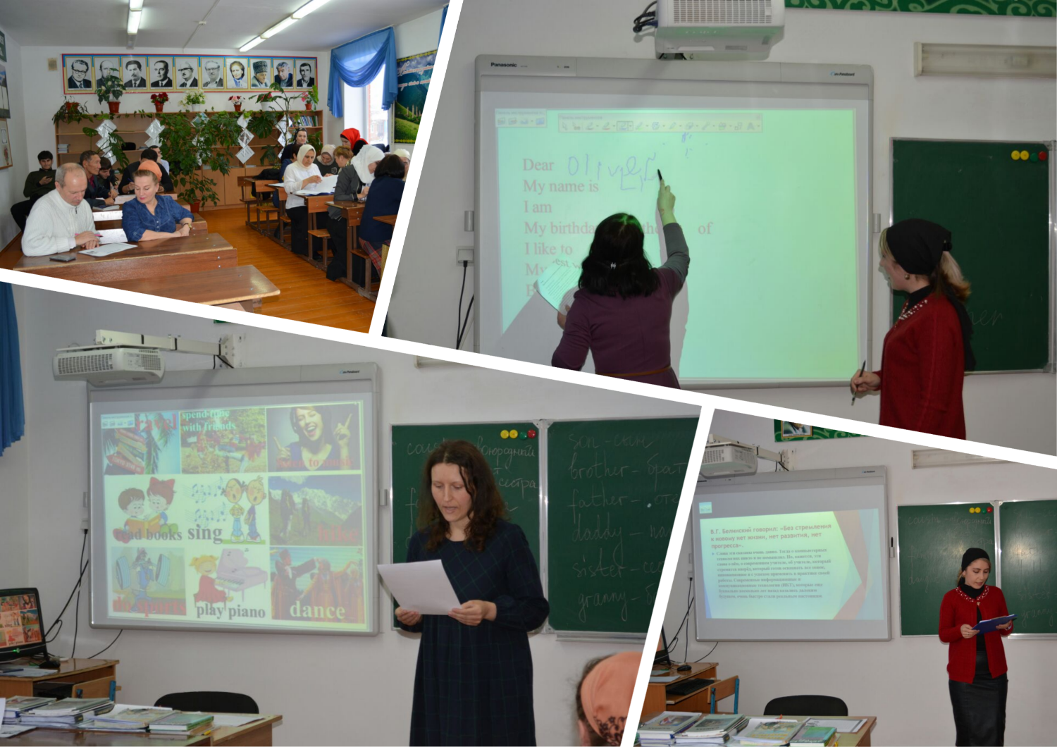 Опытом работы по применению ИКТ на уроках и во внеурочной деятельности с коллегами поделились учителя английского языка Султанбиева З. А. и Латаева О. В. В своих выступлениях педагоги представили практические наработки: использование программы Panaboard, технологии создания интерактивных презентаций с использованием гиперссылок, интерактивных заданий для школьников.