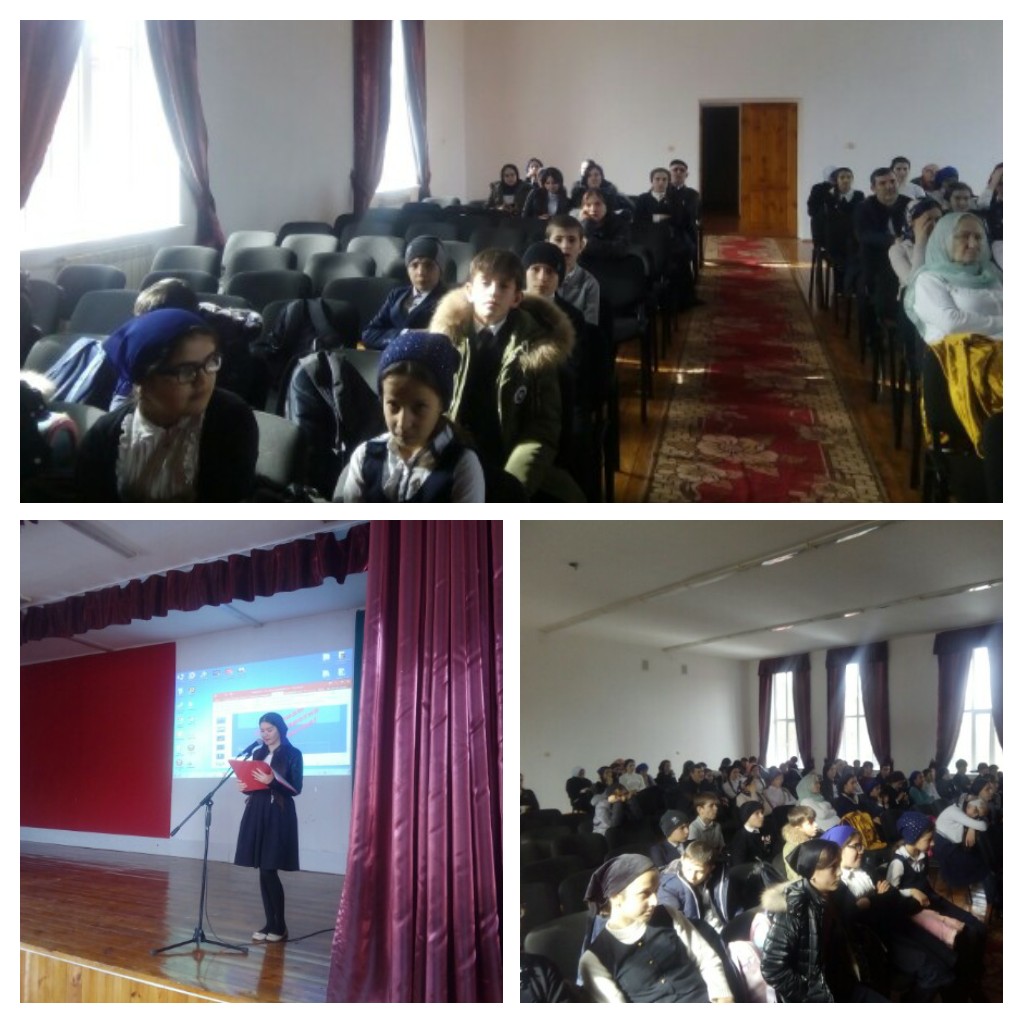10.02.201810 февраля в МБОУ «СОШ с. Беной-Ведено» состоялось общешкольное мероприятие на тему: «Терроризм – зло против человечества». Его подготовил и провел заместитель директора по ВР Абреков А. М., ведущей мероприятия была ученица 9 а класса Магометова Р. На мероприятии присутствовали учащиеся 5-11 классов с классными руководителями, директор, учителя предметники. Звучали патриотические стихотворения и песни, были показаны презентации об истории терроризма и крупнейших террористических актах современности. Также прозвучала информация об уголовной ответственности за совершение террористического акта. Закончилось мероприятие просмотром ролика «Я люблю Россию!»