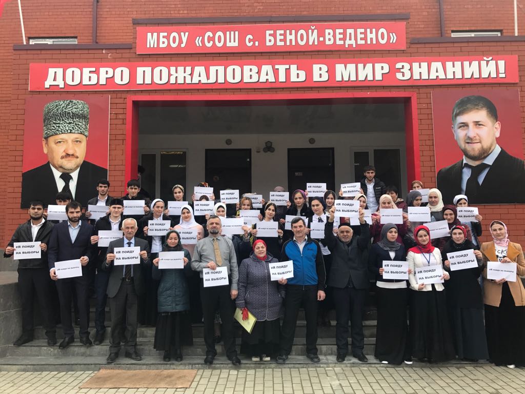 16.03.201816 марта в МБОУ «СОШ с. Беной-Ведено» состоялся флешмоб, приуроченный к предстоящим выборам Президента РФ «Я пойду на выборы». В мероприятии приняли участие педагоги школы и студенты филиала Чеченского колледжа экономики и управления.