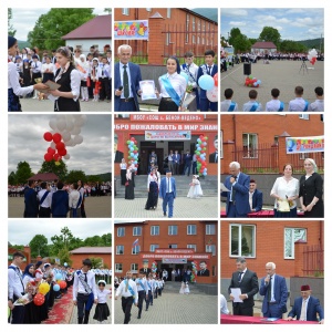 22.05.201822 мая в 10.00 на школьном плацу состоялась торжественная линейка, посвященная прощанию выпускников со школой. Здесь собралась вся школа, кроме виновников торжества; родители, родственники и друзья выпускников, гости.Вели линейку ученик 5б класса Данаев А. и ученица 6б класса Хатаева С. Они приветствовали присутствующих стихами, после чего пригласили занять свое почетное место выпускников 9-х и 11-го классов, которые гордо прошагали по центру школьной площади, предводительствуемые своими классными руководителями -- Эльсановым А. Б., Рахаевой М. Х. и Ахматовым А. Д.