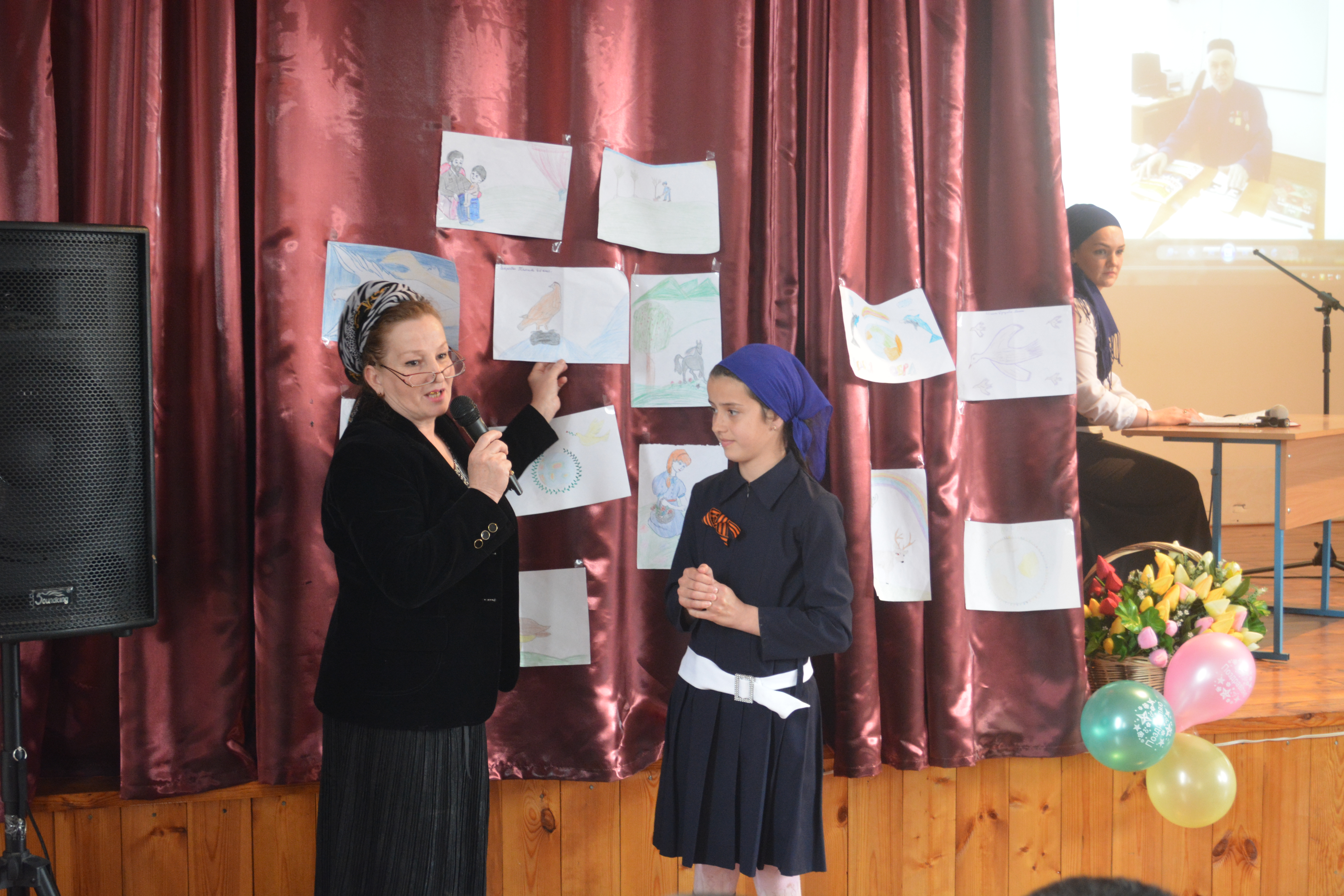 Дети комментировали свои рисунки. В ходе комментариев, поборов смущение, маленькая девочка сказала по-чеченски только одно слово: "Красиво!"