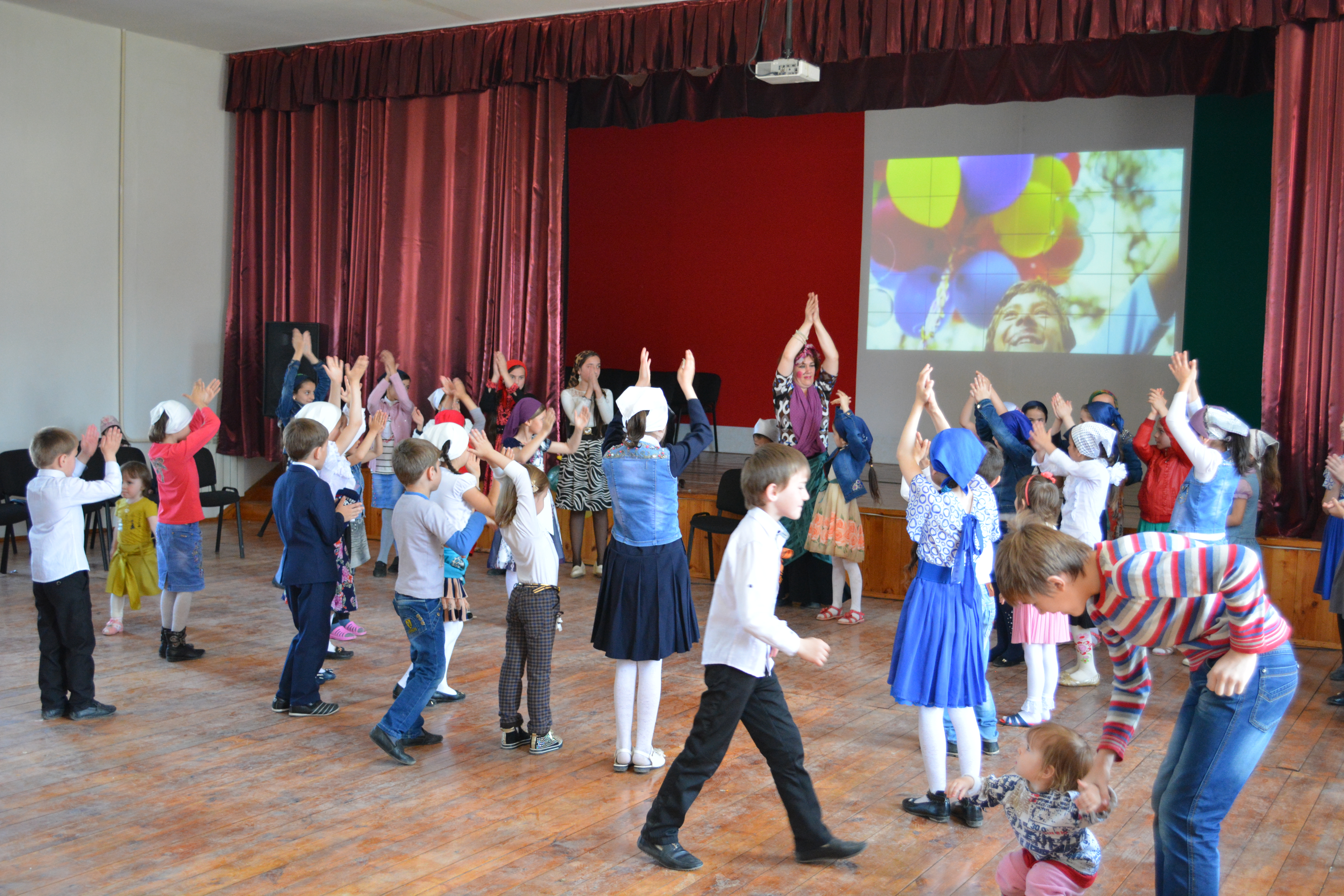 В актовом зале школы собрались учащиеся начальных классов вместе со своими мамами и младшими.После вступительного слова-приглашения в удивительную страну Детства дети прослушали песню о Бабе-Яге, которая к концу песни появилась и сама, пожимая всем руки и говоря каждому что-нибудь забавное.