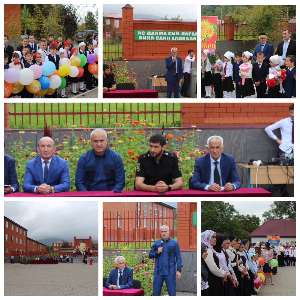 На линейке с напутственной речью выступили почётные гости: Музуруев Асланбек Гапайевич - Глава администрации Ножай-Юртовского муниципального района и Зубайраев Сайпуди Юсупович - начальник районного Управления образования.