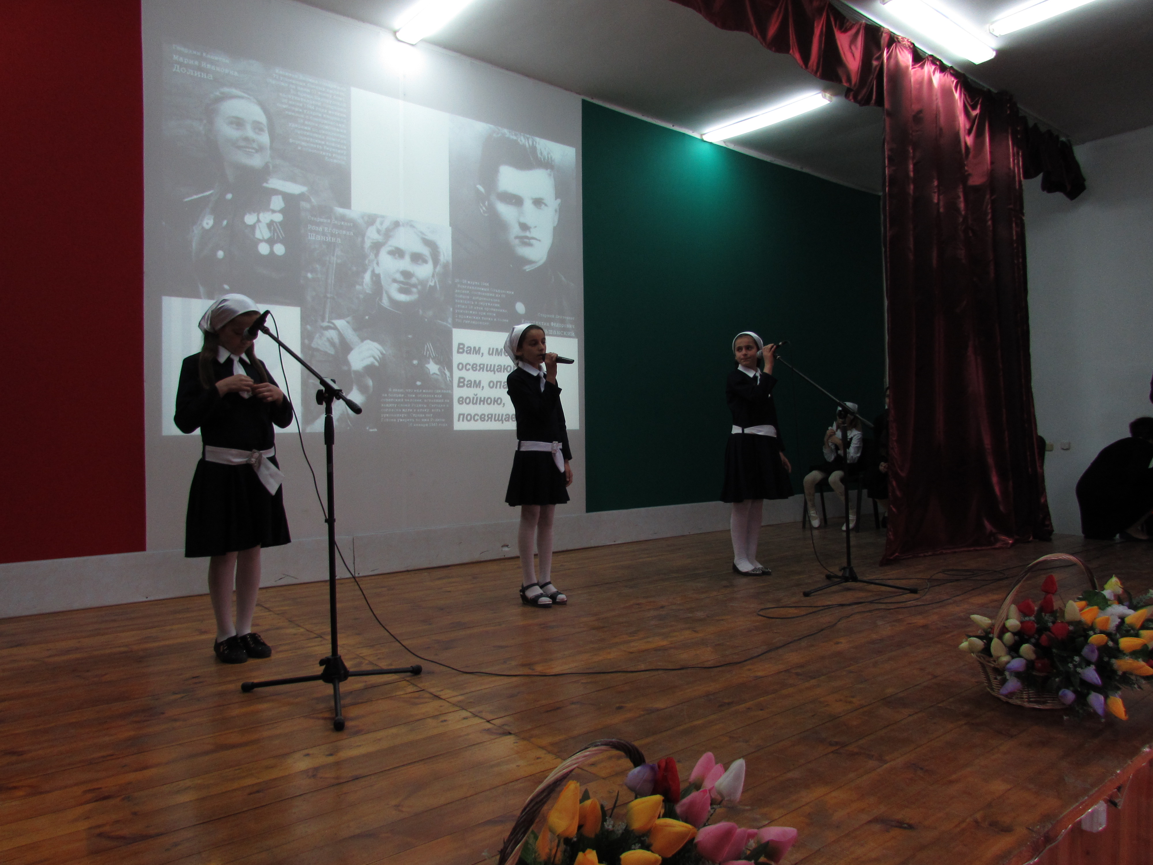 Была выпущена общешкольная газета, проведен конкурс классных стенных газет под общим названием «Этот день мы приближали как могли», конкурс рисунков «Нет войне», подготовленный Саралиевой З., конкурс чтецов «Вашей славы наследники мы», подготовленный Д. Юсуповой.