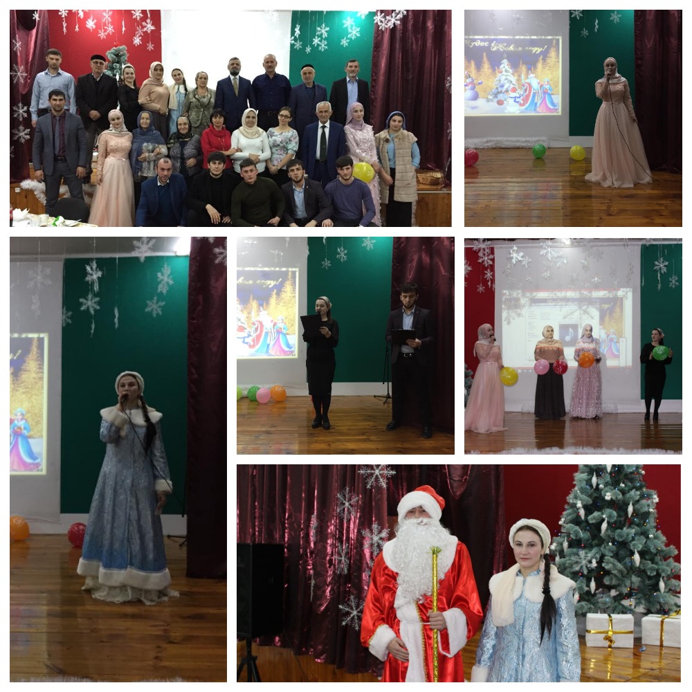 Праздничная программа вечера была яркой, интересной и разнообразной! Организаторы мероприятия Юсупова Д. Н. и Мулаев А. Л.-А. подготовили для педагогов всевозможные конкурсы, игры, песни, танцы. А Дед Мороз и Снегурочка, в роли которых выступили Арсункаев М. Х. и Рашидова Х. Ш.,