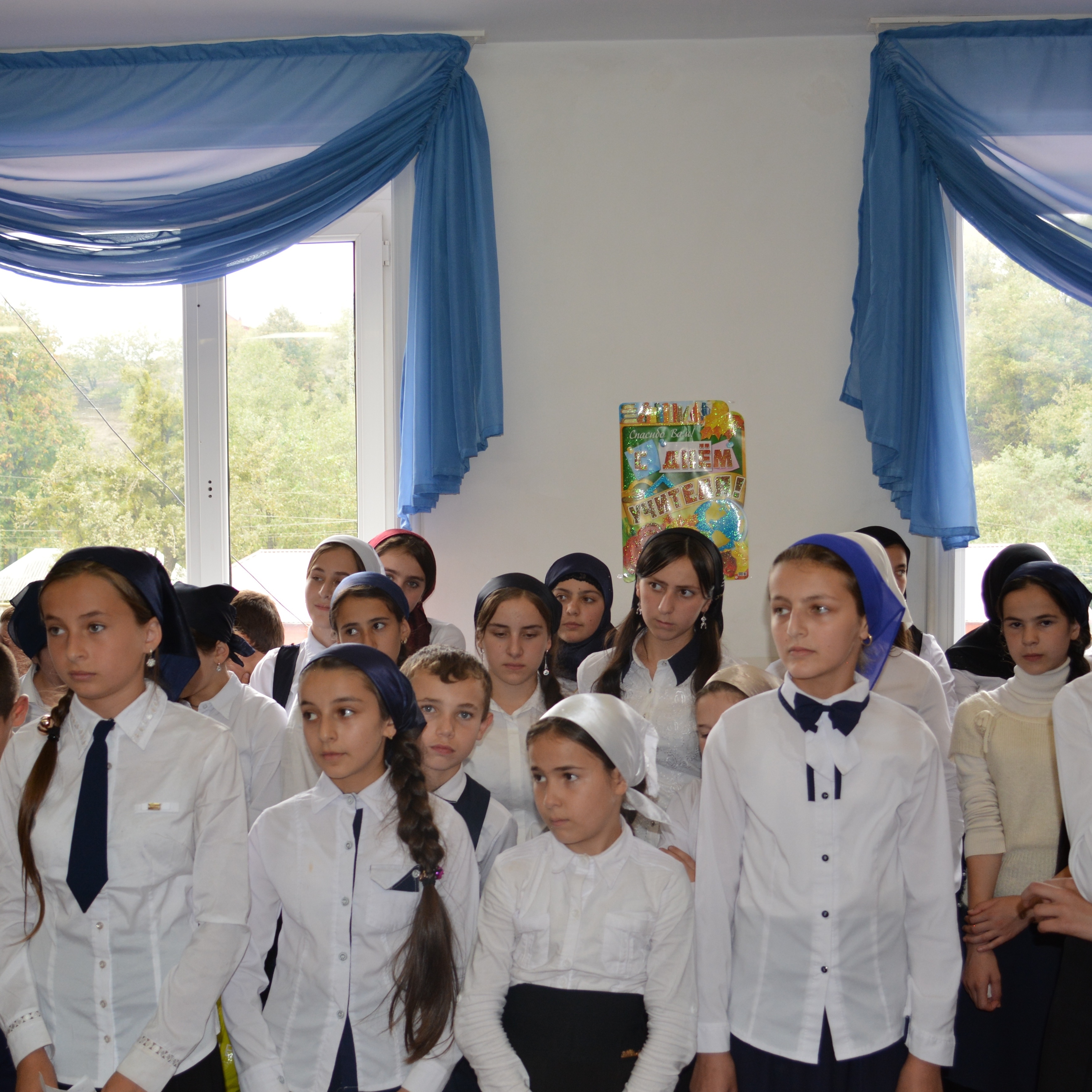 Перед собравшимися на линейку учителями выступили девочки из кружка «Час поэзии» со стихотворениями, посвящёнными учителям. Организатор детского коллектива Мусаева Э. А. объявила, что в вестибюле школы будет установлена корзина, в которую ученики смогут опустить свои пожелания и поздравления любимым учителям.