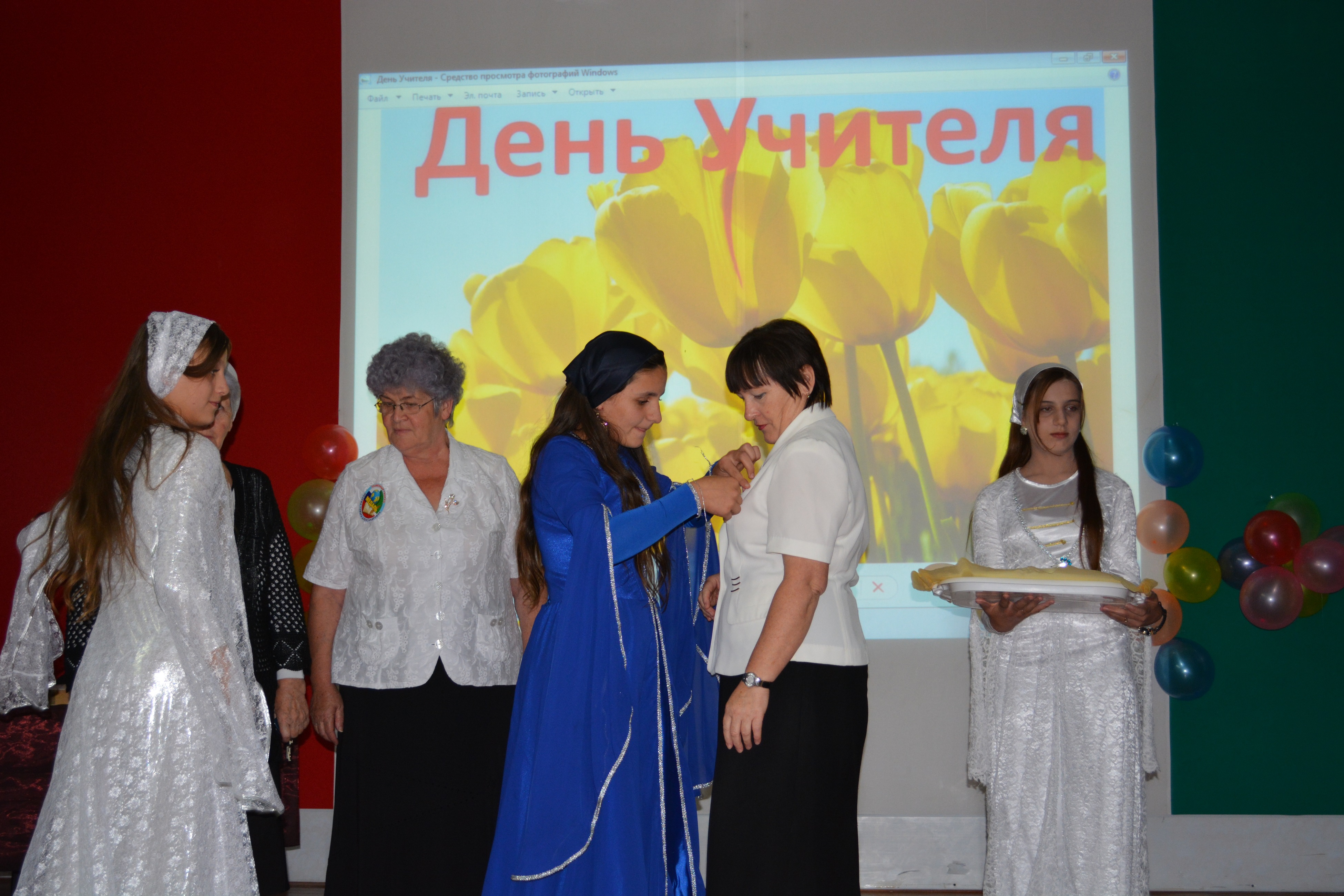 В течение предыдущей недели в школе в ознаменование Дня учителя были проведены классные часы под общим названием «Учителями славится Россия», выпущены классные стенгазеты «Спасибо учителям», прошла акция «Поздравь своего учителя», ученическим самоуправлением школы были инициированы съёмка видеоролика об учителях школы и установка в фойе школы корзины для личных поздравлений учителям.