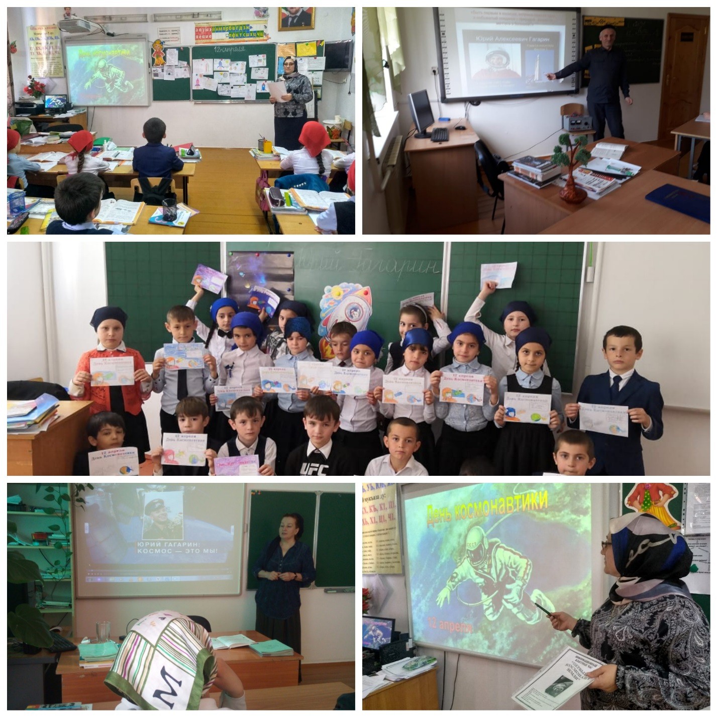 В начальных классах проведены классные часы, на которых дети узнали о первом космонавте Юрии Гагарине, выходе человека в открытый космос, о работе МКС.