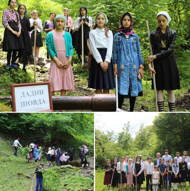 30 мая 2019 г. с целью очистки и восстановления заброшенных родников в нашей школе прошла акция «Мир чистой воды»: учащиеся 5-8-х классов очистили родники «Дадин Шовда» и «Нуки Шовда».
